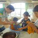 子供たちは、ワクワクしながらいろいろな色で試して、色水をつくりました。