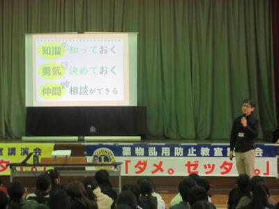 本日、薬物乱用防止教室を開催し、川口ライオンズクラブの田原浩之様を講師としてお招きしました。